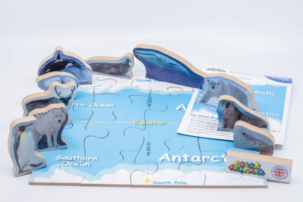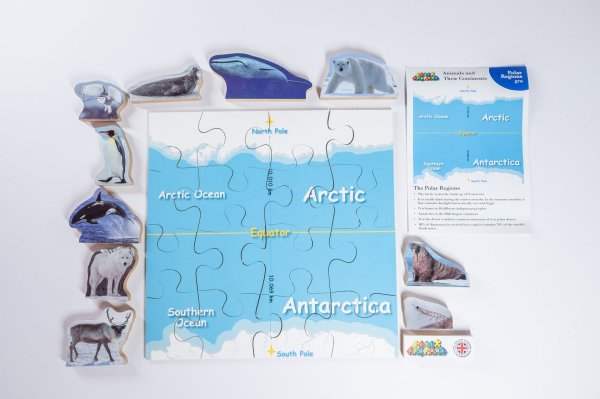 Just Jigsaws 776 Polární oblasti a její zvířata - dřevěné puzzle 16 dílů 10 zvířat je vzdělávací sada, jejímž smyslem je seznámit děti s jednotlivými kontinenty a jejich faunou. Cílem je správně poskládat mapu daného světadílu a pojmenovat všechna zvířata, která na něm žijí. Sada obsahuje 10 reálně vyobrazených, volně stojících zvířat na MDF desce o tloušťce 1,5 cm, 1 mapu kontinentu na MDF desce o tloušťce 0,4 cm rozřezanou na 16 kusů a informační list s jednoduchými vysvětlujícími informacemi o daném světadíle a některých jeho zvířatech. Toto edukativní puzzle je skvělou volbou pro všechny, kteří mají rádi přírodu a zároveň děti chtějí hravým způsobem připravit na budoucí hodiny zeměpisu.