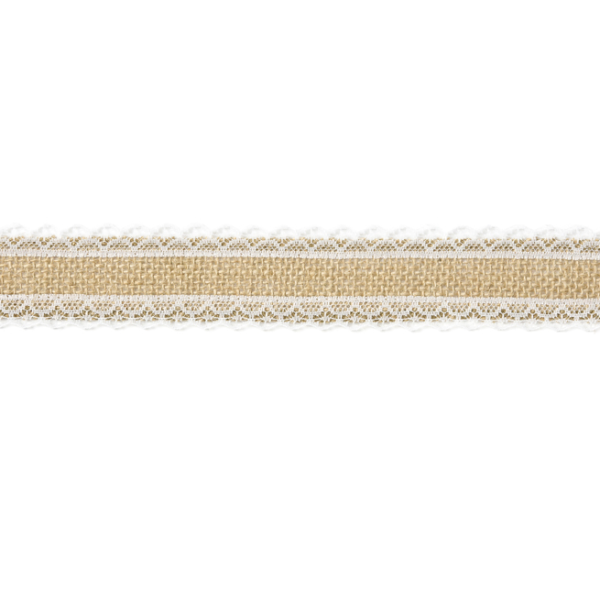 Jutová stuha s dvojitou krajkou. Rozměry 4 x 500 cm.