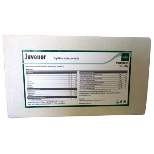 100 g Juvenoru pro novorozené tele do půl litru prvního kolostra, v době do 2 hodin po porodu. Podle potřeby opakovat 1 x denně i v dalších dnech po narození.