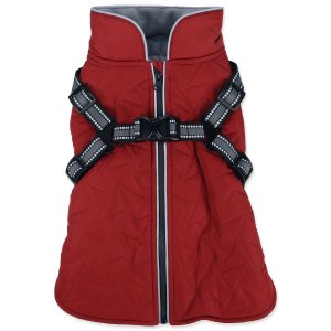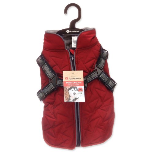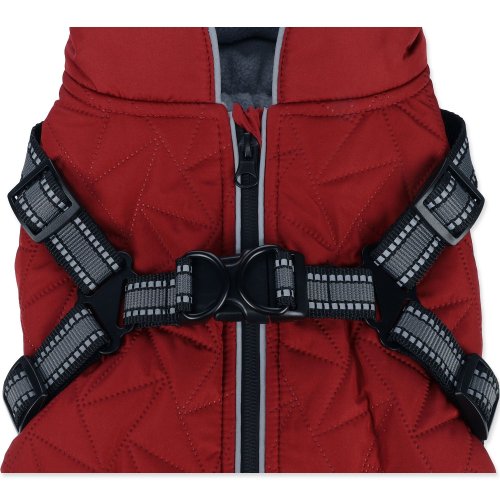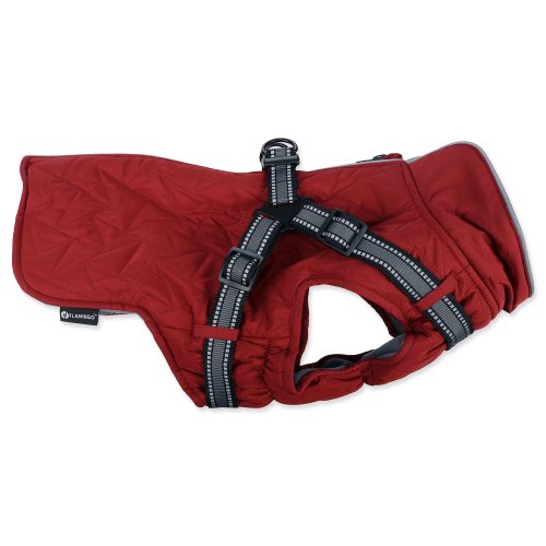 integrovaný postroj s reflexními proužky, prošívaný voděodolný materiál, příjemná fleecová podšívka, pohodlné zapínání na hřbetě psa.