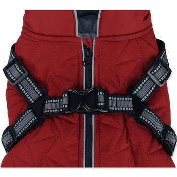 Zimní bunda Duker je ideální volbou pro psy zvyklé na postroj. Vnější nastavitelný postroj je opatřený dvěma kroužky pro připnutí vodítka a reflexními proužky pro lepší bezpečnost za snížené viditelnosti. Bunda má vrchní prošívanou vrstvu z voděodolného materiálu a příjemnou flísovou podšívku, která udrží psa v teple a pohodlí. Vesta se snadno zapíná pomocí zipu a postroj pomocí karabiny na hřbetě. Pružné krytí břicha a stojáček zamezují úniku tepla. Hlavní přednosti: