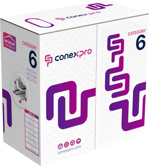 Bezhalogenový UTP kabel kategorie 6 Conexpro využijete především pro vnitřní rozvody strukturované kabeláže. Vodiče z kvalitního měděného drátu o průřezu AWG24 jsou chráněné pláštěm z materiálu LSZH (Low smoke zero halogen). Kabel vám zajistí přenos dat rychlostí až 1 Gbps (1000 Base-T i 1000 Base-Tx).