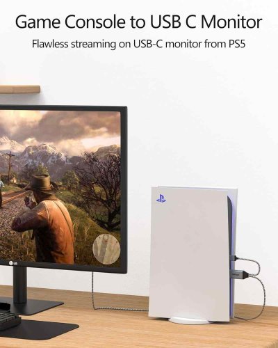 USB-C konektor monitoru nebo promítačky musí být USB 3.2 generace 2 a vyšší. Zároveň je určený pro vstup video signálu. Kabel podporuje automatickou synchronizaci audia a videa.