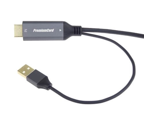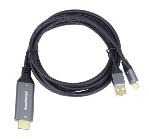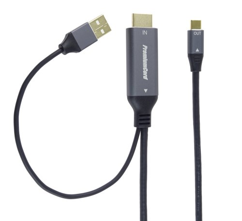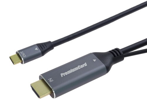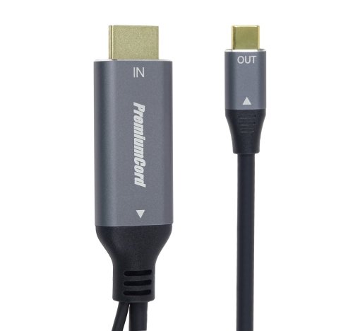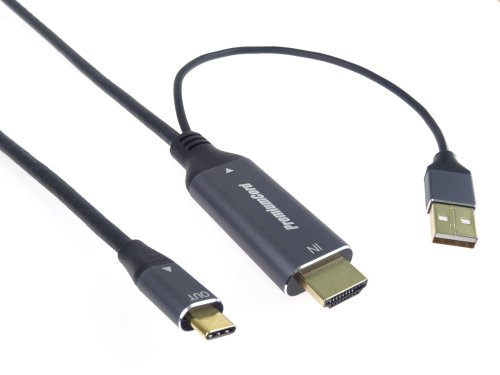 2m kabel PremiumCord je vybavený konektorem HDMI 2.0, USB-C pro připojení monitoru a USB konektorem pro napájení. S jeho pomocí přenesete video a zvuk z počítače či notebooku do monitoru, televize nebo projektoru.