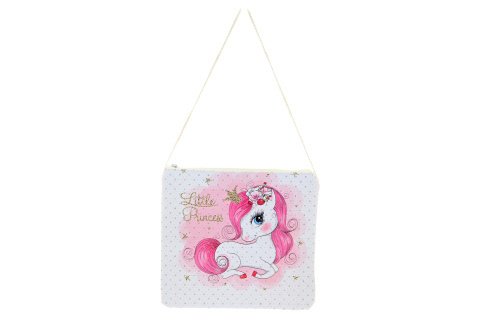 Látková kabelka s motivem roztomilého jednorožce. Přední strana s obrázkem lesklá (koženka). Baleno v sáčku. Rozměry kabelky 24x22 cm. Délka popruhu cca 60cm x 2. Výrobek není hračka, je určený k dekorativním účelům.