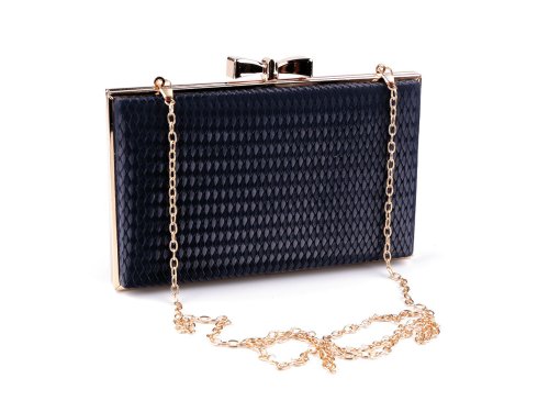 Malá společenská kabelka vyzařuje eleganci a luxus, má zajímavou povrchovou strukturu se saténovým leskem. Zdobí ji výrazné lesklé zapínání ve tvaru mašle a rámeček po celém obvodu. Kabelka je pevně vyztužená, její součástí je dlouhý odnímatelný řetízek na karabiny. Můžete ji nosit v ruce nebo jako crossbody přes rameno či do kříže.