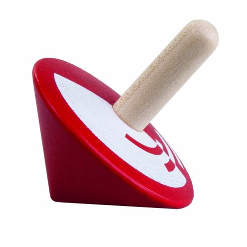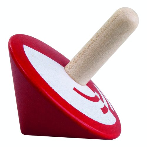 Dřevěná točící káča v červené barvě pomáhá rozvíjet jemnou motoriku prstů.