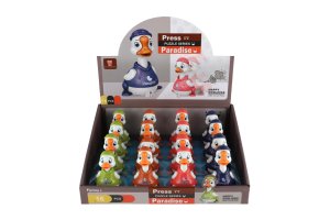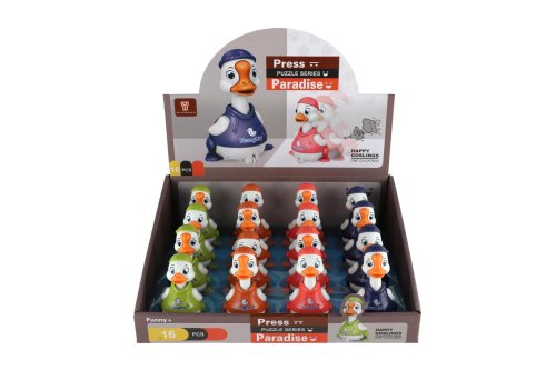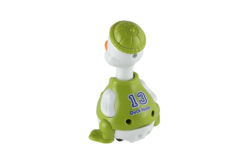 Kačer jezdící je na setrvačník. Zmáčkni hlavu a může jet. Rozměry výrobku 7 x 9 x 5 cm. Vhodné pro děti od 3 let.