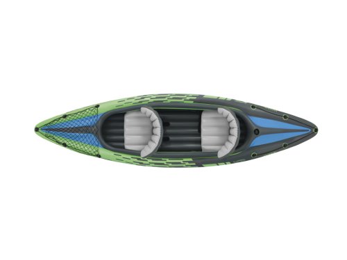 Kajak CHALLENGER K2 je určen pro 2 osoby má nízký profil pro jezera, mírné řeky a klidné moře. Součástí balení jsou aluminiová vesla a ruční pumpa.