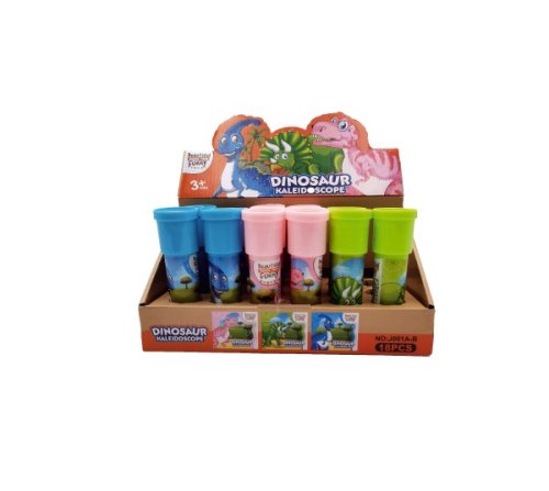 Kaleidoskop s motivem dinosaura. Kaleidoskop neboli krasohled, je dětská hračka, která pomocí soustavy zrcadel a barevných tělísek vytváří neopakovatelné obrazce při pohledu proti světlu. Vhodné pro děti od 3 let. Poznámka: Fotografie je ilustrativní. Dodáváme dle skladových zásob.