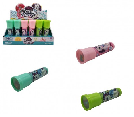 Kaleidoskop neboli krasohled, je dětská hračka, která pomocí soustavy zrcadel a barevných tělísek vytváří neopakovatelné obrazce při pohledu proti světlu. Kaleidoskop s motivem jednorožce. Rozměry výrobku 13 x 4 x 4 cm. Vhodné pro děti od 3 let.