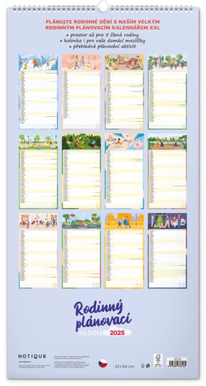 Kalendář 2025 nástěnný: Rodinný plánovací XXL, 33 × 64 cm