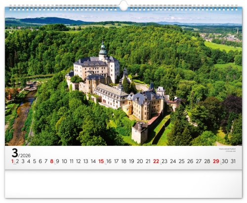 Velkoformátový kalendář obsahuje panoramatické fotografie krás a památek České republiky, které budete chtít navštívit. Vydejte se s námi na Grabštejn, Fulnek, Konopiště i do Jindřichova Hradce. Kalendář zahrnuje jednoduché kalendárium a vznikl ve spolupráci s YB studiem, které se specializuje na focení měst a krajiny.