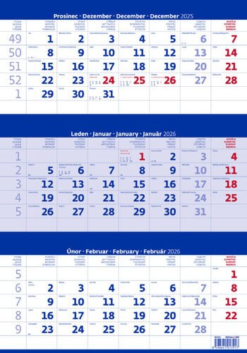 Kalendář nástěnný 2026 - Tříměsíční modrý