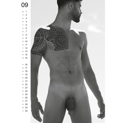 Černobílé fotografie mužů v rouše Adamově pro rok 2026 na 13 měsíců!