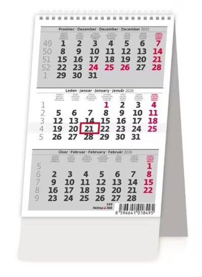 Kalendář stolní 2026 - MINI tříměsíční kalendář ČR/SR