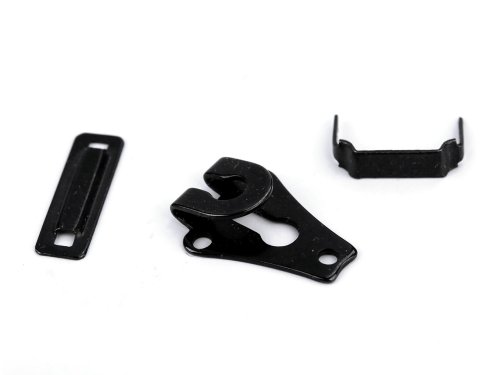 Kovový háček se skládá ze tří částí. Používá se jako zapínání u oděvních výrobků, například pánských a dámských kalhot nebo sukní. [Kov, ze kterého je háček vyrobený, je pratelný.]