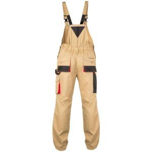 kalhoty montérkové, béžové s laclem materiál: 100% bavlna, 270 g/m2 speciální konstrukce sponky zabraňující jejímu sesouvání 10 kapes, včetně 6 zapínaných na suchý zip kapsa na mobilní telefon trojité …