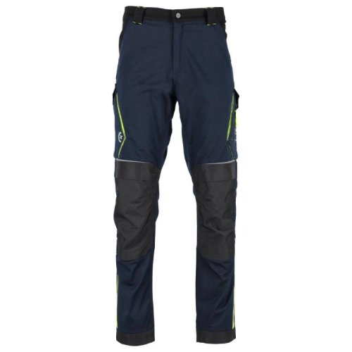 Kalhoty VIKTOR jsou vysoce odolné díky trojitým švům, zesílení namáhaných míst záševkami a pružnému klínku v rozkroku, přičemž všechny detaily jsou pečlivě zpracovány. Nabízejí 15 praktických kapes a přihrádek, včetně kolenních kapes z odolného materiálu 900D Oxford, měchové kapsy na suchý zip, kapes na nářadí, telefon a drobnosti, což umožňuje pohodlnou a organizovanou práci. Prodyšný a pružný materiál zajišťuje komfort při pohybu, reflexní prvky zvyšují bezpečnost. Možnost prodloužení nohavic o 5 cm, zesílené spodní části a elastický pas pro maximální pohodlí. Kvalitní zapínání s kovovým knoflíkem a zipy YKK.