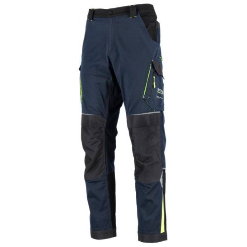 Kalhoty VIKTOR jsou vysoce odolné díky trojitým švům, zesílení namáhaných míst záševkami a pružnému klínku v rozkroku, přičemž všechny detaily jsou pečlivě zpracovány. Nabízejí 15 praktických kapes a přihrádek, včetně kolenních kapes z odolného materiálu 900D Oxford, měchové kapsy na suchý zip, kapes na nářadí, telefon a drobnosti, což umožňuje pohodlnou a organizovanou práci. Prodyšný a pružný materiál zajišťuje komfort při pohybu, reflexní prvky zvyšují bezpečnost. Možnost prodloužení nohavic o 5 cm, zesílené spodní části a elastický pas pro maximální pohodlí. Kvalitní zapínání s kovovým knoflíkem a zipy YKK.