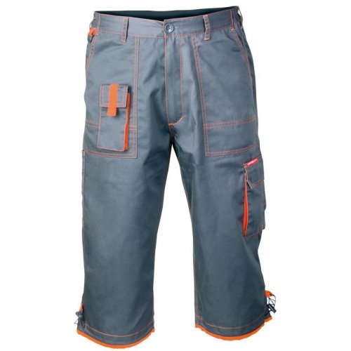 kalhoty montérkové 3/4, šedé materiál: 65% polyester, 35% bavlna, gramáž 245 g/m2 7 kapes, včetně 4 zapínaných na suchý zip kapsa na mobilní telefon dvojité švy regulace šířky pomocí gumičky regulace …