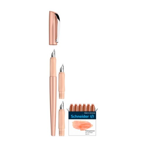 Dárková kaligrafická souprava ve dvou atraktivních pastelových barvách obsahuje kaligrafické pero s hrotem 1,1 mm, náhradní hrotové části v šířkách 1,5 a 1,8 mm a balení 6 ks inkoustových bombiček v barvě pera.