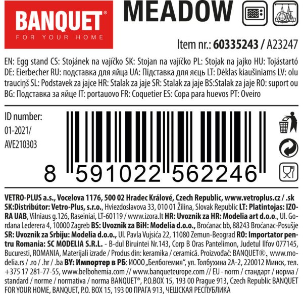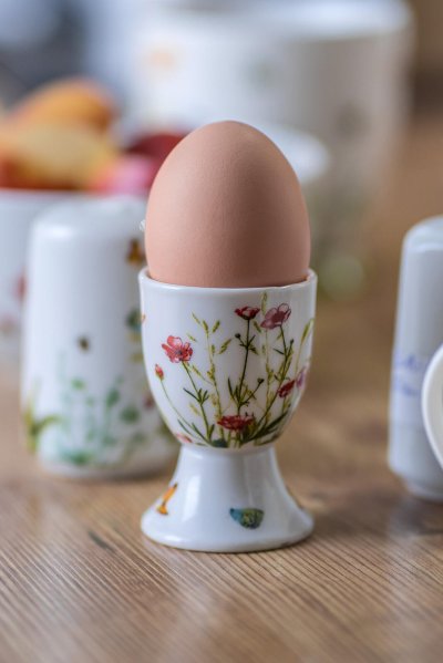 Srtojánek na vajíčka MEADOW, s krásným květinovým vzorem, se hodí při všedních i svátečních příležitostech. Stojánek na vajíčka je vhodný do mikrovlnné trouby i myčky. S tímto dekorem si můžete zakoupit i další produkty a vytvořit si tak krásnou servírovací sadu.