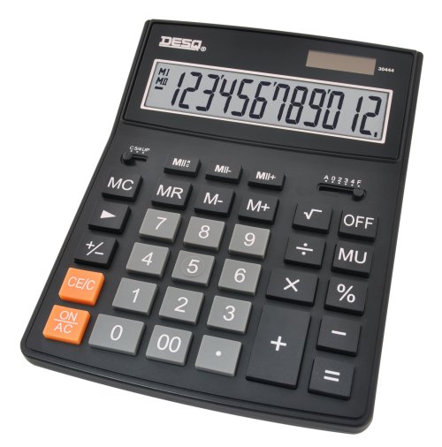 - Odolná stolní kalkulačka - 12ti místný LCD displej - Velká tlačítka - Krytý displej z akrylátového skla - Funkce MU, Backspace, tlačítko s dvojitou nulou, tlačítko (+/-) - Nastavení zaokrouhování a …