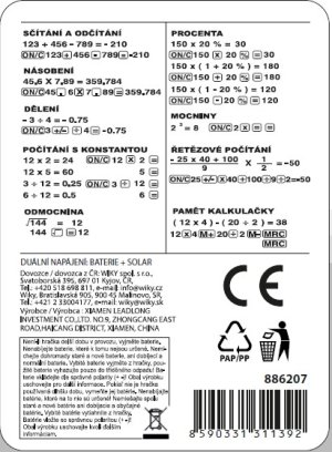 Seznam bezpečnostních varování pro kalkulačky je založen na požadavcích nařízení (EU) 2023/988 o obecné bezpečnosti výrobků (GPSR): * Používejte kalkulačku podle zamýšleného účelu, abyste se vyhnuli chybným výpočtům a možným důsledkům z toho vyplývajícím. * Věnujte pozornost bateriím: je nebezpečné je polykat a také nevhodné nabíjení v kalkulačkách napájených bateriemi. * Chraňte kalkulačku před vlhkostí, extrémními teplotami a přímým slunečním zářením, protože mohou poškodit zařízení. * Pravidelně čistěte kalkulačku pomocí měkkého, suchého hadříku, abyste zabránili mechanickému nebo elektrickému poškození. * Ujistěte se, že kalkulačka je vhodná pro věk a dovednosti uživatele, abyste se vyhnuli frustracím a chybám. * V případě kalkulaček napájených solární energií zkontrolujte, zda je solární panel čistý a funkční. * Vyhněte se používání kalkulačky v blízkosti silných elektromagnetických polí, která mohou narušovat její provoz. * Uchovávejte kalkulačku na bezpečném místě, mimo dosah dětí, abyste zabránili spolknutí malých částí nebo baterií. * Nepokoušejte se kalkulačku opravovat sami, protože to může vést k úrazu elektrickým proudem nebo jinému poškození. * V případě vědeckých a grafických kalkulaček si přečtěte návod k použití, abyste pochopili všechny funkce a vyhnuli se chybám. * Věnujte pozornost ergonomii: dlouhodobé používání kalkulačky může způsobit únavu a svalové napětí. * Nepoužívejte kalkulačku během řízení vozidla nebo obsluhy strojů, protože to může vést k nehodám. * Postarejte se o recyklaci: použité baterie a kalkulačky by měly být předávány k recyklaci.