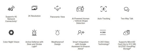 Kamera Ezviz H8C 4G (2K) je venkovní PTZ kamera s 360° pokrytím, která se připojí přes 4G LTE (nano SIM) nebo LAN (RJ45) – bez potřeby Wi-Fi. Nabízí detailní 2K obraz, AI detekci osob i vozidel, automatické sledování, obousměrný hovor a aktivní ochranu sirénou a stroboskopem. Díky odolné konstrukci a nočnímu vidění až 30 m je ideální pro chaty, stavby, sklady nebo velké pozemky.