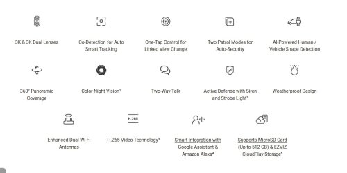Díky technologii duálních objektivů poskytuje EZVIZ H9c 3K bezkonkurenční zabezpečení. Horní širokoúhlý objektiv monitoruje celou oblast, zatímco otočný teleobjektiv se zaměřuje na důležité detaily. Oba mohou pracovat společně i nezávisle na sobě. Pokročilé AI algoritmy umožňují detekci a automatické sledování osob i vozidel, čímž výrazně zvyšují bezpečnost vašeho domova nebo firmy. V případě detekce narušení kamera spustí zvukový alarm a blikající světlo.