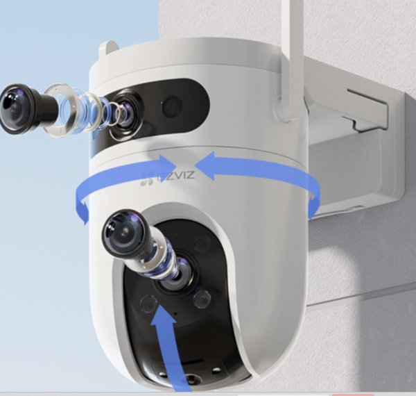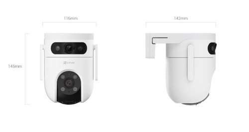 Pořiďte si voděodolnou venkovní otočnou IP kameru EZVIZ H9c Dual 3K. Duální objektiv kombinuje 5MP snímač, širokoúhlý objektiv 2,8 mm s horizontálním pozorovacím úhlem 110 ° a otočný objektiv 6 mm s úhlem 56 °. Díky barevnému nočnímu vidění s IR přísvitem do vzdálenosti 30 m a bílým LED světlem poskytuje detailní záznamy i za snížené viditelnosti. Velkou výhodou je také možnost obousměrné komunikace a kompatibilita s hlasovými asistenty Google Assistant a Amazon Alexa. Kameru napájíte pomocí adaptéru DC 12 V/1,5 A, zatímco připojení k síti zajišťuje LAN port nebo 2,4GHz Wi-Fi. Veškeré záznamy se ukládají na microSD kartu s kapacitou až 512 GB (třeba dokoupit) nebo na úložiště Ezviz Cloud.