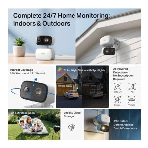 Kamera poskytuje jasný obraz v rozlišení 2880 × 1620 px díky 1/2.7” CMOS Starlight senzoru. AI funkce rozpoznají osoby, domácí mazlíčky, vozidla i pláč dítěte a minimalizují zbytečná upozornění. V případě pohybu kamera automaticky sleduje objekt a odešle upozornění do aplikace.
