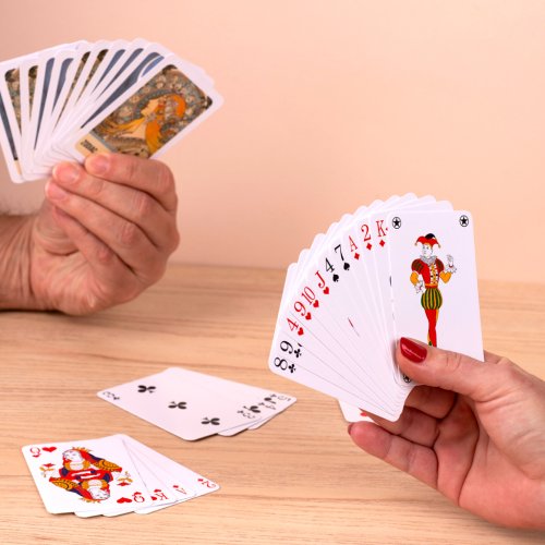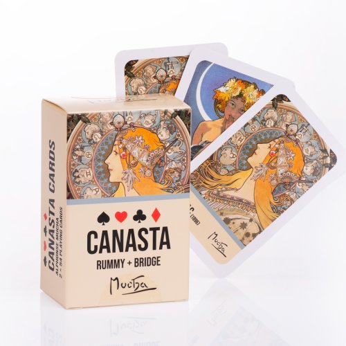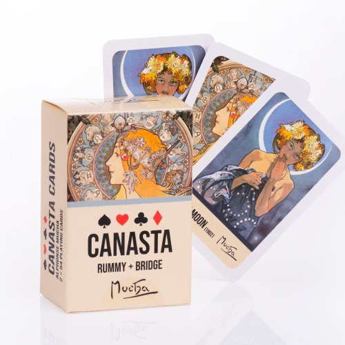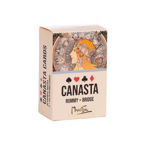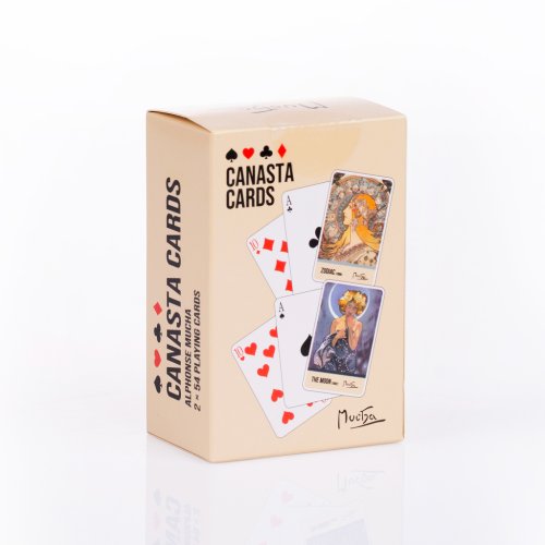krabička s obsahem 2x 54 kanastových karet, s rubovými motivy Luna a Zodiak