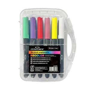 Akrylové popisovace CONCORDE Recolor jsou skvelou volbou pro kreativitu na svetlých i tmavých površích, jako je plátno, papír, hladké drevo, sklo, plast nebo kámen Sada obsahuje 12 ks popisovacu, které …
