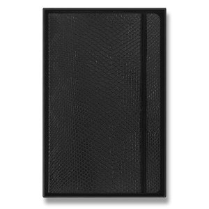 Prémiová kolekce zápisníků Moleskine Velvet Collection s pevnou, ve hřbetu šitou vazbou v kartonových deskách, obepnutý pružnou páskou proti samovolnému otevírání v černé sametové krabičce s magnetických …