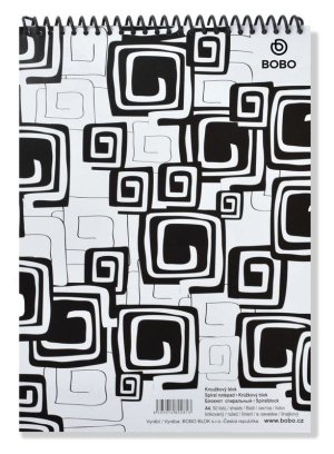 Výrazný blok A4 v černobílém designu obsahuje 50 linkovaných listů. br brDesignově nepřehlédnutelný a zajímavý černobílý poznámkový blok s horní plastovou spirálou.