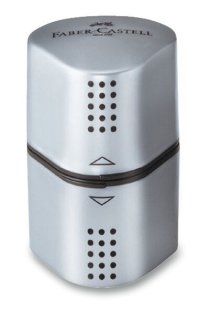 Ergonomické ořezávátko v designu GRIP se 3 otvory. velká nádobka na odřezky na obou stranách uzavíratelné pro standartní, trojhranné tužky, pastelky a silné tužky typu Jumbo