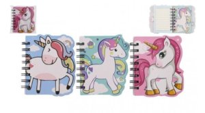 Kroužkový zápisník s motivy jednorožce.