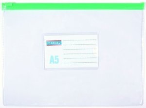 Obálka formátu A5 s plastovým zipem vhodná pro organizaci a ochranu drobných dokladů.