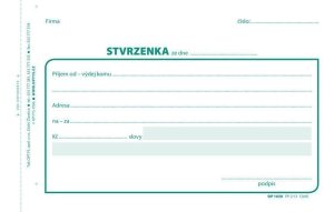 tzv. košilka nepropisovací nečíslovaná formát 29,7 x 14 cm na šířku obsahuje 100 listů odtržitelných perforací, se zakládacím děrováním