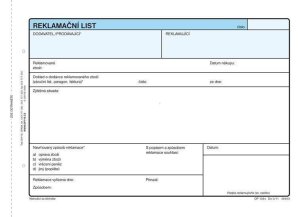 Reklamační list A5 OP 1284. Nepropisující tiskopis.