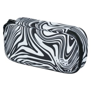Školní pouzdro etue je opatřeno pevnými zipy, kapsičkou na zip a klopou s pevnými poutky po obou stranách.