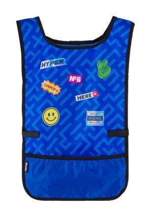 Zástěra do výtvarné výchovy či na jiné tvůrčí aktivity. pončo - oblékání přes hlavu po stranách zapínání na suchý zip dvě prostorné kapsy 100% polyester Rozměry: 35 x 55 cm.
