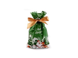 Velké stahovací sáčky s vánočními motivy se skvěle hodí na dárkové balení různých balených pochutin, ale také třeba kosmetiky, svíček a jiných maličkostí.