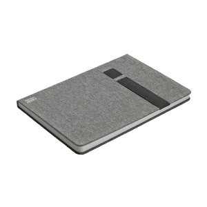 Poznámkový blok, zápisník v textilních deskách, které lze použít jako stojánek na mobil.