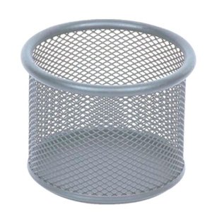 Drátěný kalíšek na sponky CONCORDE ve stříbrné barvě Kalíšek střední velikosti na kancelářské sponky Praktický doplněk na kancelářský stůl Průměr 9 cm Výška 6,4 cm