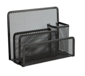 Kovový organizér na dopisy a psací potřeby v černé barvě.