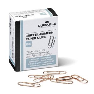 Kancelářské sponky pokovené mědí Materiál: měď Velikost: 32 mm Balení: 100 ks