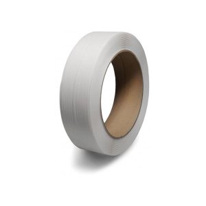 Bílá vázací páska na zásilky, vhodná všude tam, kde nestačí pouze přelepit krabice balicí páskou nebo ovinout paletu se zbožím průtažnou fólií Pásky výrazně zvyšují stabilitu balených palet a usnadňují …